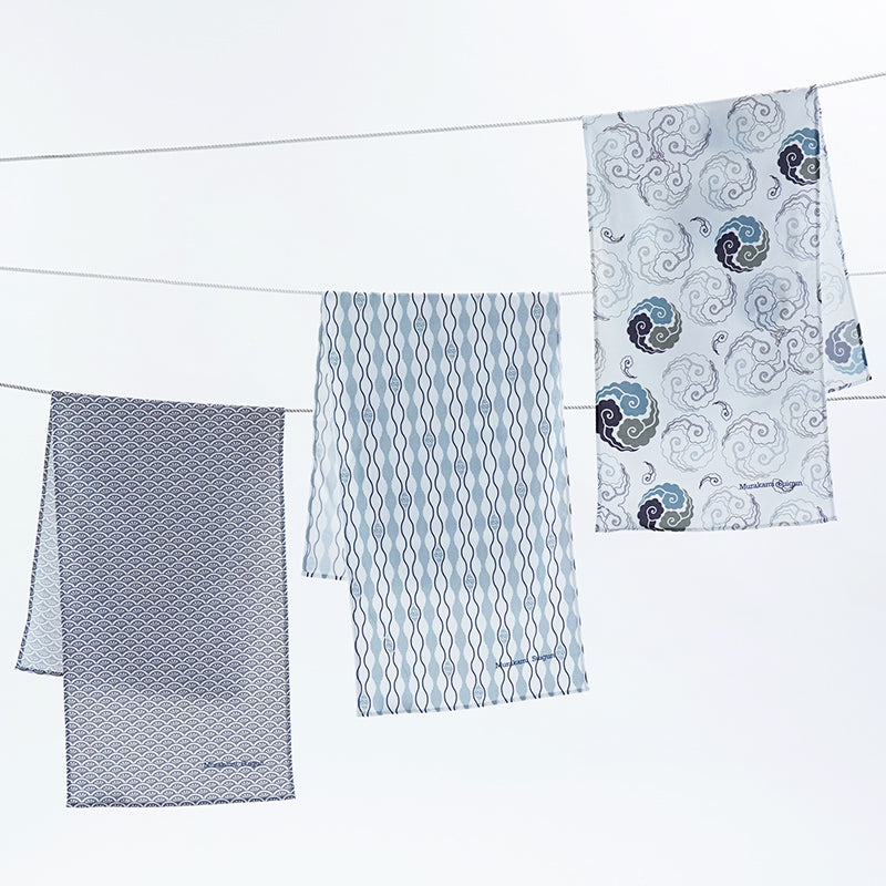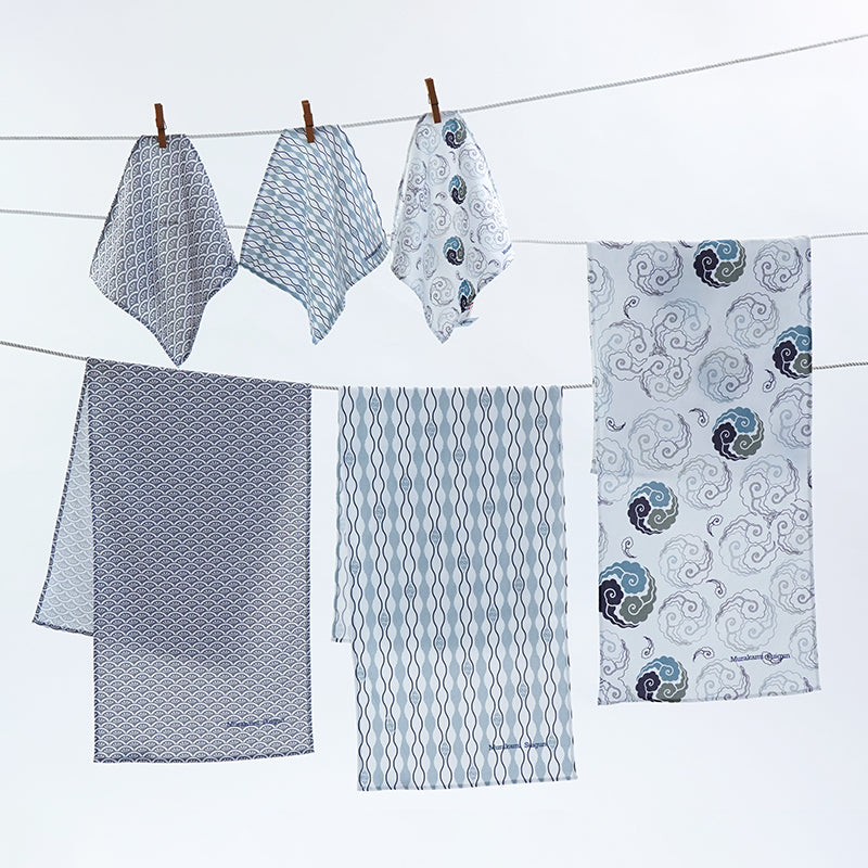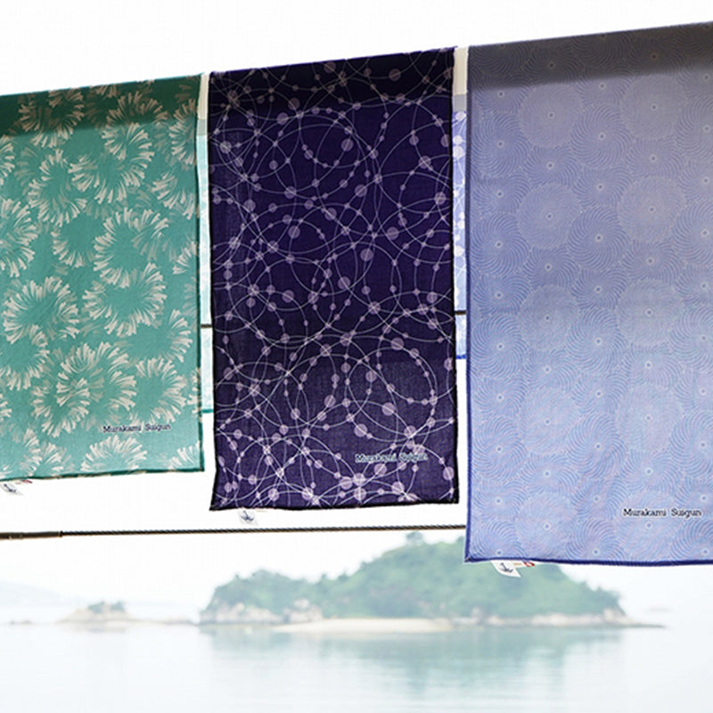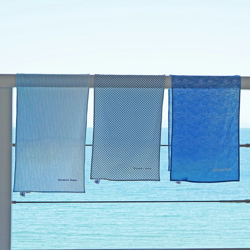 The "Murakami Suigun," pirates who were active in the clear blue straits of the Seto Inland Sea in Japan, have been revived as tenugui hand towels using Imabari's traditional techniques.