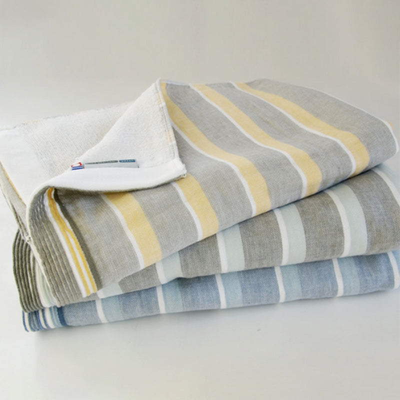 The stylish big border design is woven with gauze, while the back of the towel has a firm long pile for a pleasant touch.