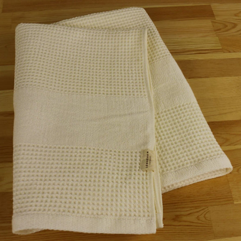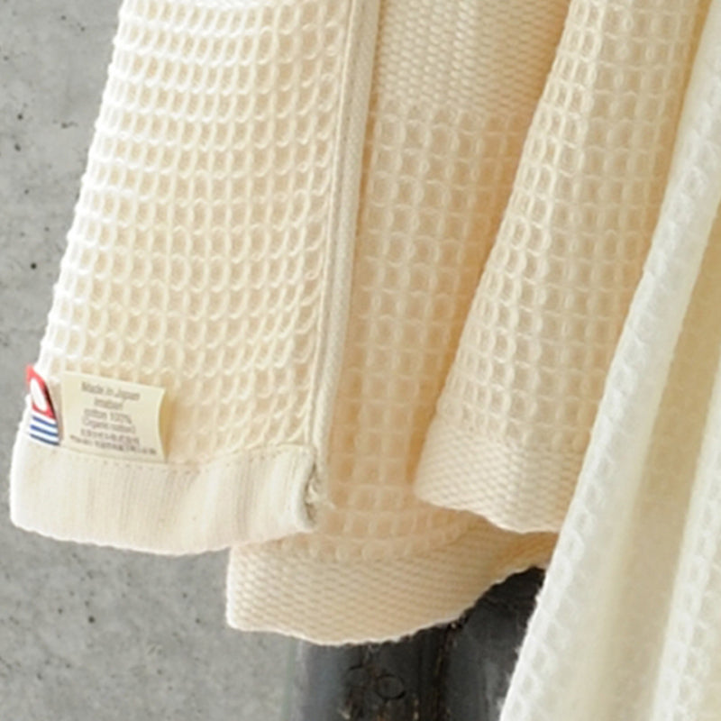 The fine count yarn is used in a waffle weave with no pile, creating an uneven texture and expressing the texture of the material.