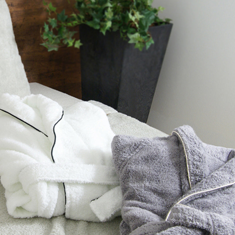 Our goal was to create a bathrobe that doubles the comfort of an after-shower experience and fills you with a sense of well-being.