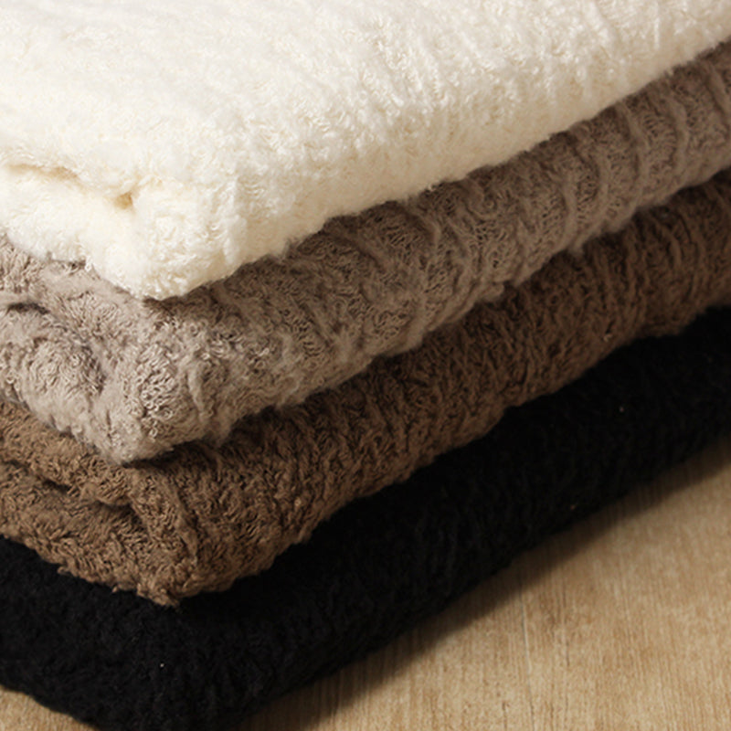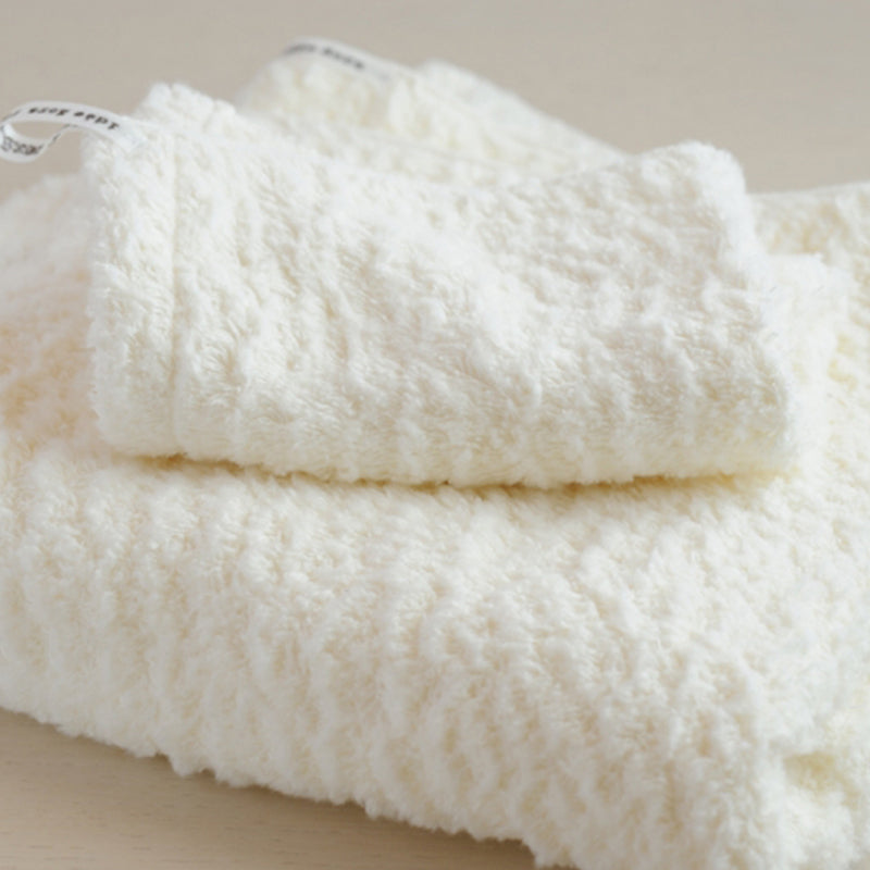 이 타월은 얼굴을 파묻고 싶어지는 양모 같은 폭신한 촉감을 가지고 있습니다.