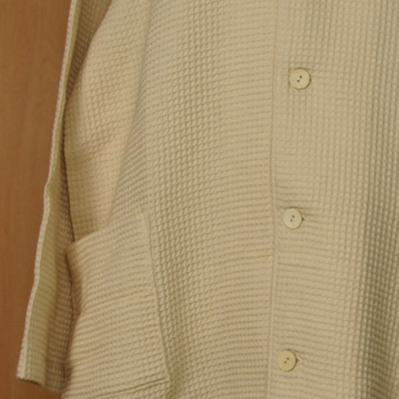 These one-piece pajamas are very light and comfortable to wear.It is made in two sizes, unisex, for men as well as women.Due to the characteristics of the weave, the pajamas will shrink a little after washing.