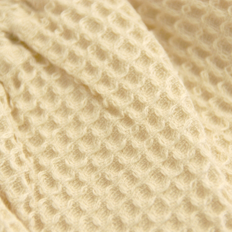 This ecological towel is made of 100% organic combed yarn from Supima cotton, a type of extra-long staple fiber cotton synonymous with high quality.The fine count yarn is used in a waffle weave with no pile, creating an uneven texture and expressing the texture of the material.