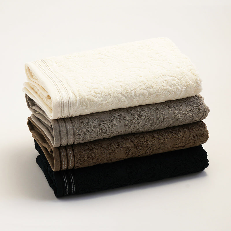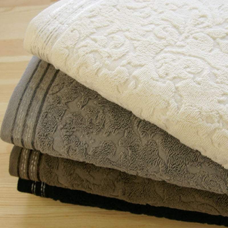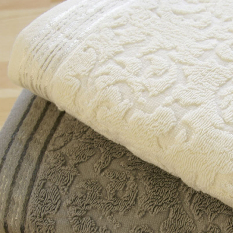 Soft and voluminous Jacquard towels with a long pile of sweet-twist yarn.