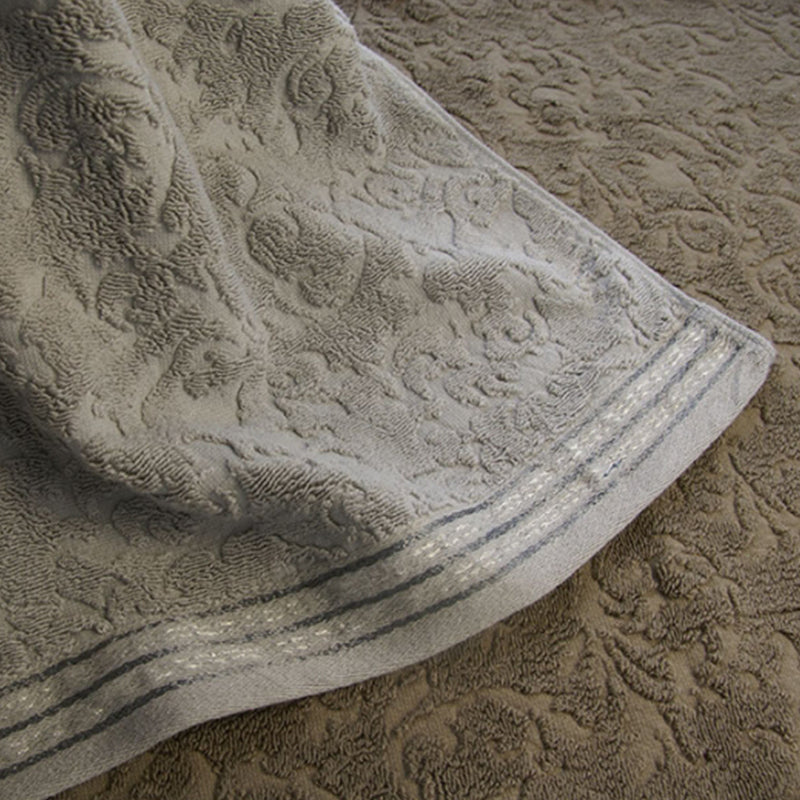 Silver thread is used for the hem line, adding a sense of luxury to the simplicity of the towels.