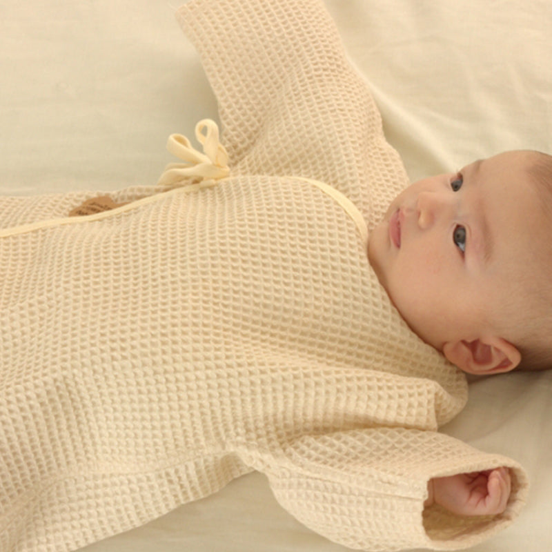 It has excellent water absorbency and gently wraps baby's skin, which tends to sweat easily.
