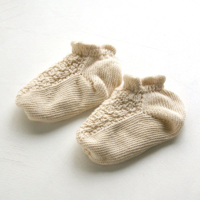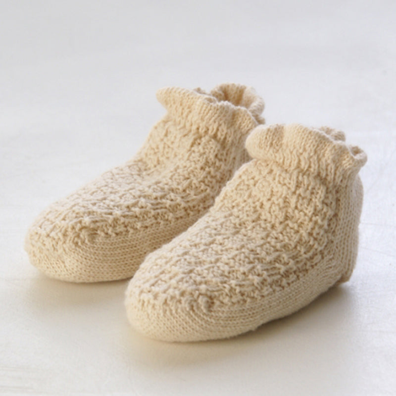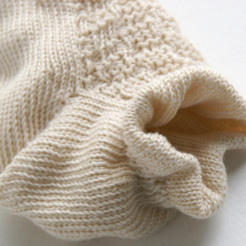 The inside, which is in direct contact with the baby's skin, has a soft, non-twisted yarn-like texture, while the outside is made of organic yarn.