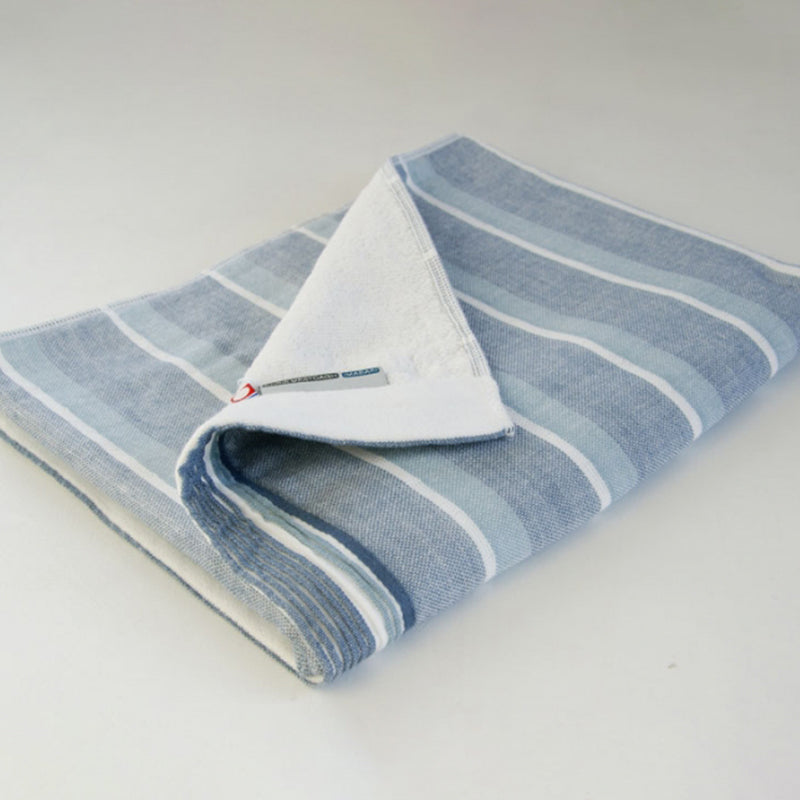 The stylish big border design is woven with gauze, while the back of the towel has a firm long pile for a pleasant touch.