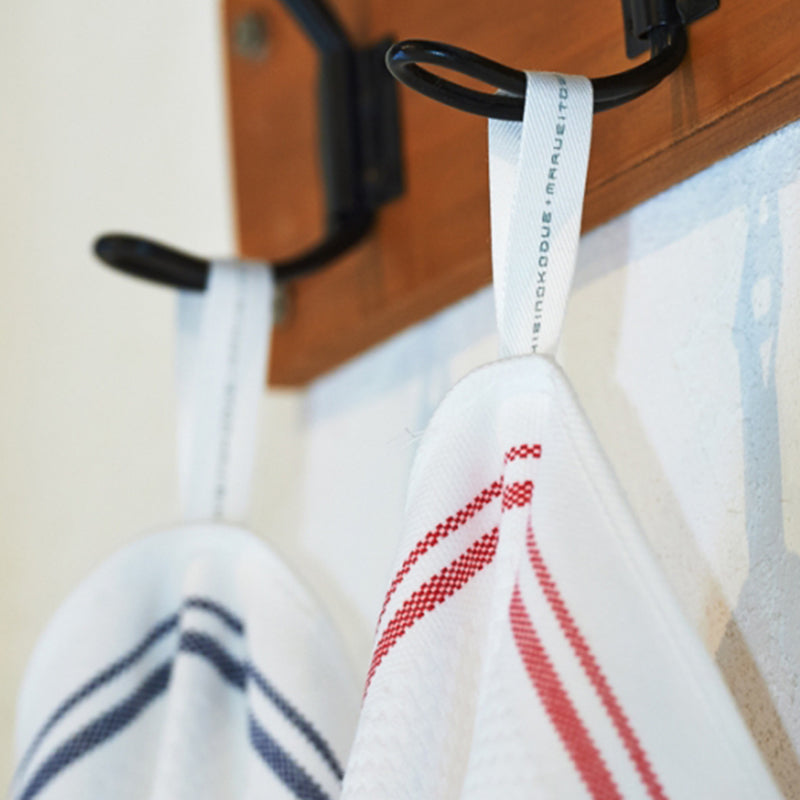 The characteristic weaving technique called honeycomb cloth weave is used to create a thin but highly absorbent towel.