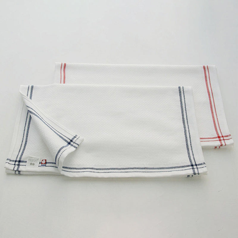 The characteristic weaving technique called honeycomb cloth weave is used to create a thin but highly absorbent towel.