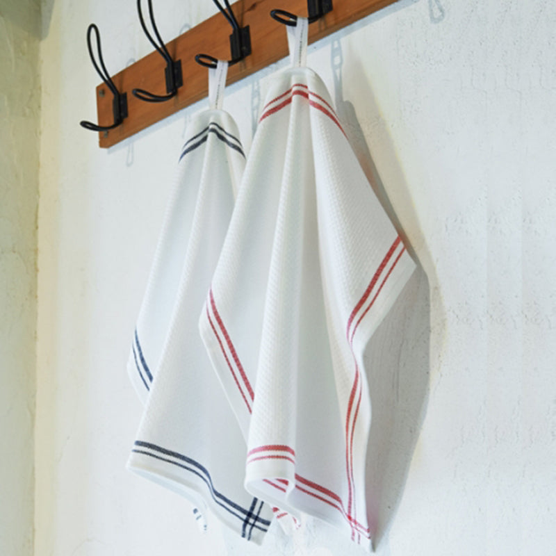 The characteristic weaving technique called honeycomb cloth weave is used to create a thin but highly absorbent towel.
