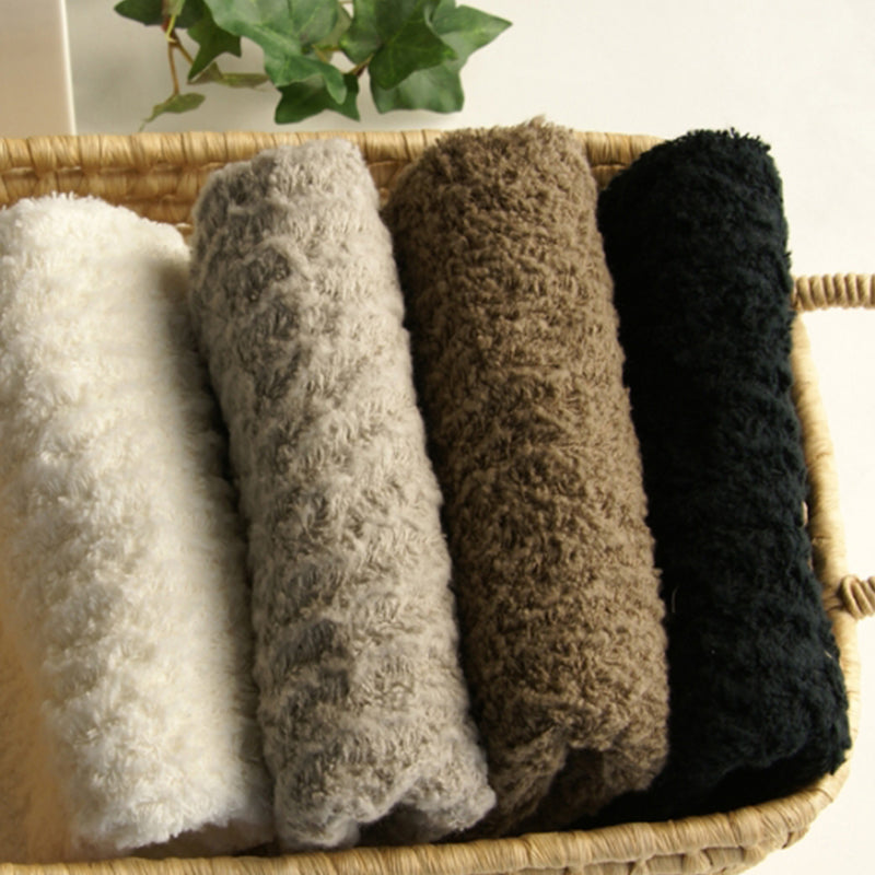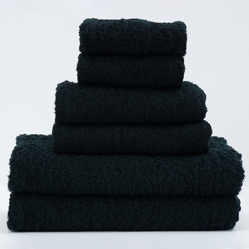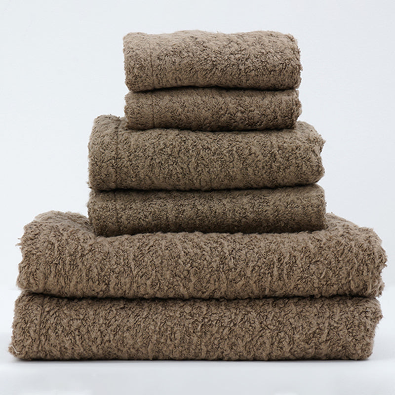 This towel has a wool-like fluffy touch that makes you want to snuggle your face into it.