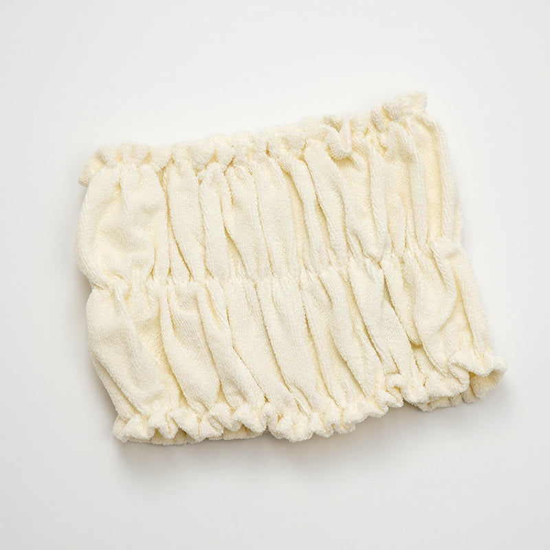 Simply wrap your hair around the turban and weave in the ends.It has plenty of gathers and elasticity so it fits even long hair.It holds hair in a wider area than a turban and is easier than using a face towel.It has excellent water absorbency, so it is perfect for after shampooing.
