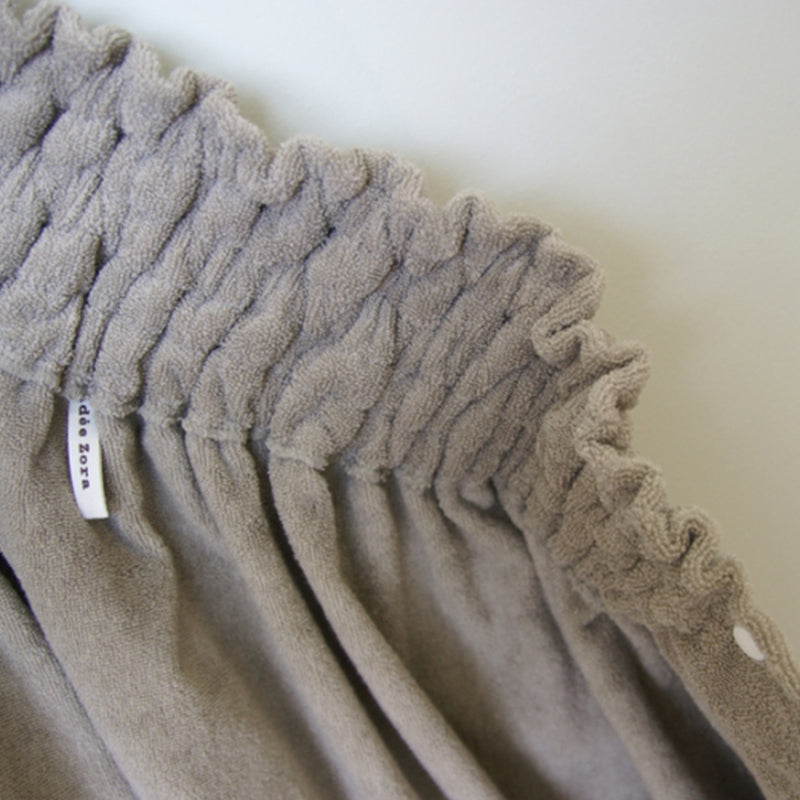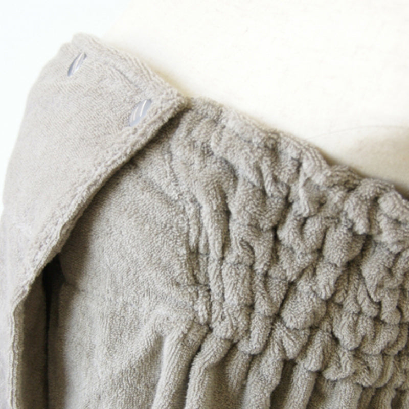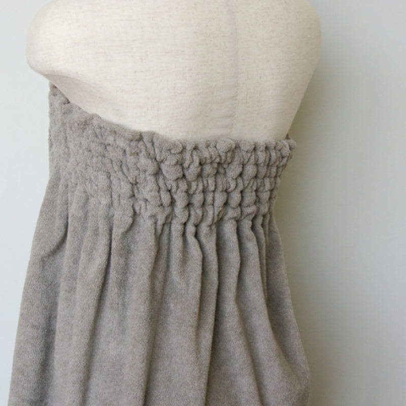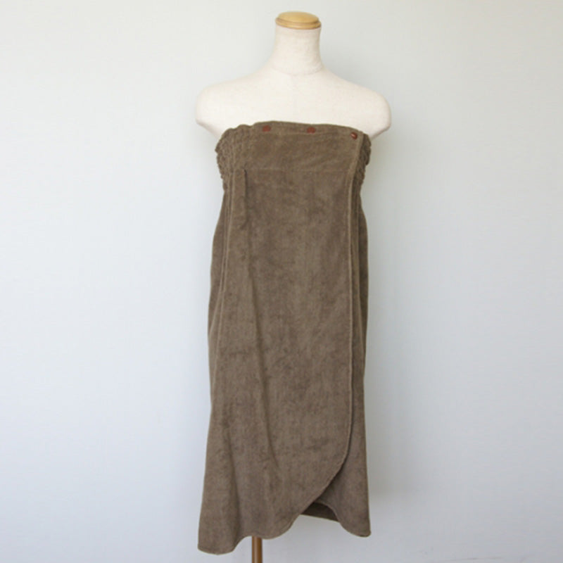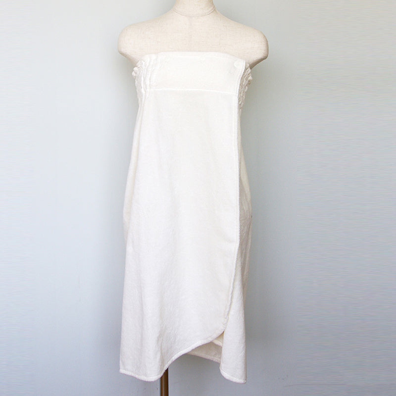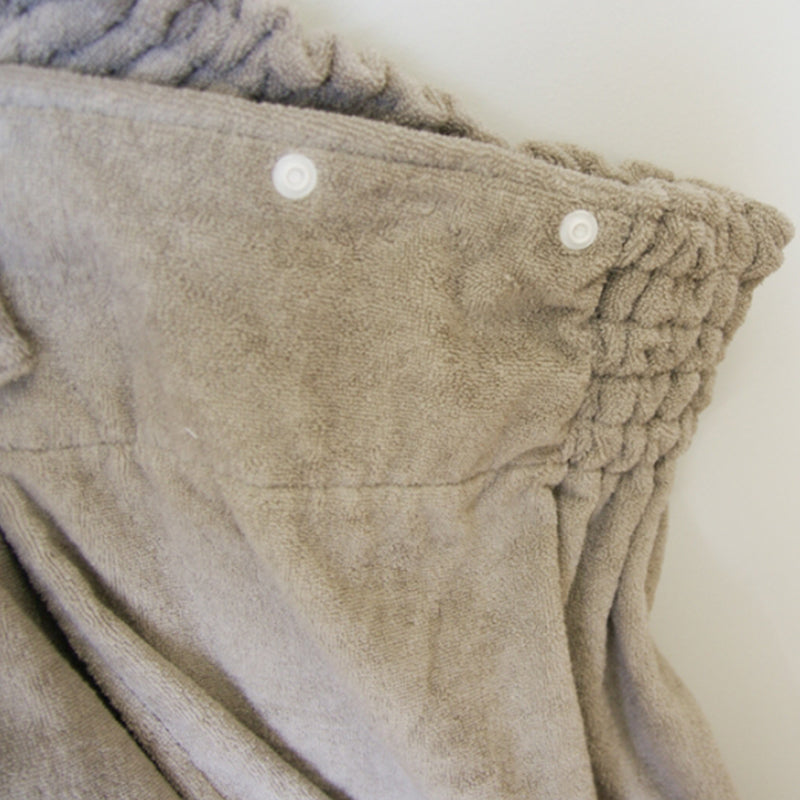 After taking a bath, at the beach, by the pool...This wrap dress is made of luxurious towel fabric. Simply wrap it around your body and snap it on.