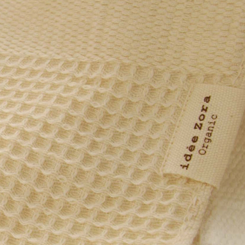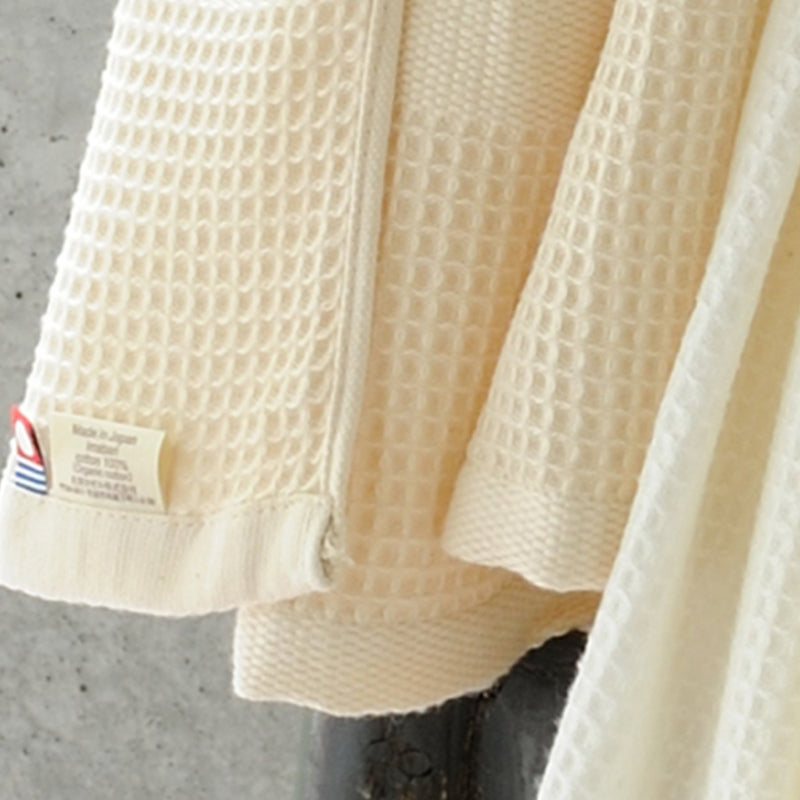 The fine count yarn is used in a waffle weave with no pile, creating an uneven texture and expressing the texture of the material.