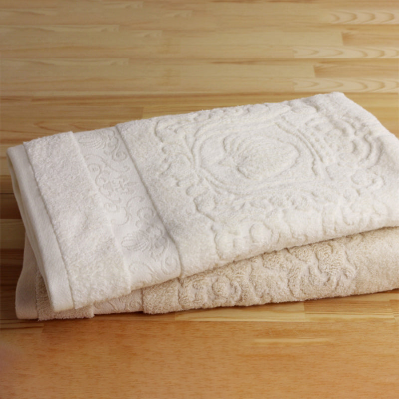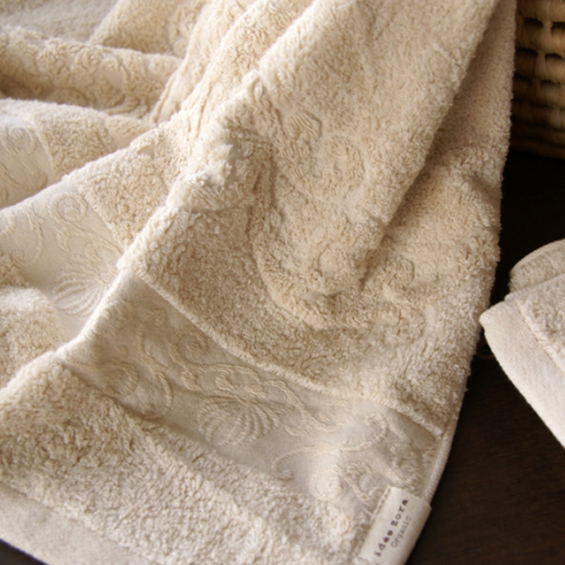 This towel is made of 100% organic combed yarn of Supima cotton, a type of "super-long fiber cotton" that is synonymous with high quality cotton.