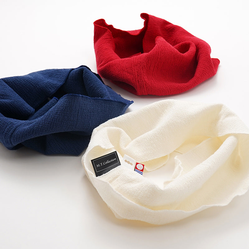 Stress-free, thin and elastic pile fabric using ultra-fine yarn. Smooth and light to the touch.Although it does not fit snugly around the neck, it can be loosely wrapped around the neck to avoid stress and can be used during sleep.It can be added as a plus one to clothes with open collars to accentuate and keep warm.